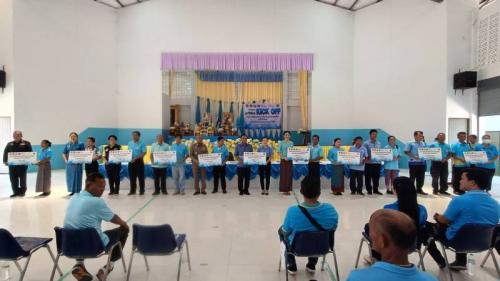 นายสุทธิโรจน์ เจริญธนะศักดิ์ นายอำเภอกาบเชิง เป็นประธานในกิจกรรม Kick Off หมู่บ้านป้องกันและแก้ไขปัญหายาเสพติดด้วยกระบวนการกองทุนแม่ของแผ่นดิน ระดับอำเภอ พร้อมด้วย สมาชิกสภาผู้แทนราษฎร เขต 8 สมาชิกสภาองค์การบริหารส่วนจังหวัดสุรินทร์ เจ้าคณะอำเภอกาบเชิง เจ้าคณะตำบลทั้ง 6 ตำบล ผู้กำกับการสถานีตำรวจภูธรกาบเชิง เกษตรอำเภอกาบเชิง ผอ.สกร. สัสดีอำเภอ หัวหน้าส่วนราชการ นายก อป. ผู้นำ อช. ประธาน กพสอ.กาบเชิง กำนัน ผู้ใหญ่บ้าน เครือข่ายกองทุนแม่ของแผ่นดินระดับอำเภอ เครือข่าย โคก หนอง นา ระดับอำเภอ หมู่บ้านเป้าหมาย 44 หมู่ บ้านพร้อมภาคีเครือข่าย 7+1 รวมทั้งสิ้น 300 คน เข้าร่วมกิจกรรม ในกิจกรรมประกอบไปด้วย การให้ความรู้เกี่ยวกับกองทุนแม่ของแผ่นดิน การประกาศวาระอำเภอกาบเชิง วิธีการจัดตั้งหมู่บ้านป้องกันและแก้ไขปัญหายาเสพติด โดยกองทุนแม่ของแผ่นดิน ตามนโยบายกระทรวงมหาดไทย การเปิดกิจกรรมฯ โดยท่านนายอำเภอกาบเชิง พิธีลงนามบันทึกความร่วมมือ (MOU) 7+1 ภาคี สนับสนุนการดำเนินงานขับเคลื่อนมาตรการป้องกันแก้ไขปัญหายาเสพติดด้วยกระบวนการกองทุนแม่ของแผ่นดิน โดยมี เจ้าคณะอำเภอกาบเชิง นายอำเภอกาบเชิง ผู้กำกับการสถานีตำรวจภูธรอำเภอกาบเชิง พัฒนาการอำเภอกาบเชิง หัวหน้าส่วนราชการ และประธานเครือข่ายกองทุนแม่ของแผ่นดินระดับอำเภอ ร่วมเป็นสักขีพยานการลงนาม MOU และการมอบป้ายหมู่บ้านป้องกันและแก้ไขปัญหายาเสพติด